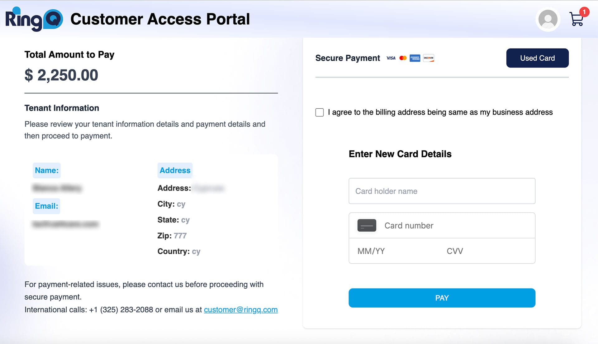 - To access the customer portal, go to https://cap.ringq.com/login and enter your credentials.
