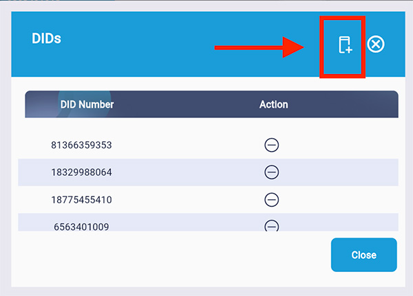 3. From this screen you will see the available DID numbers in your system. Click the “Add DID” button.