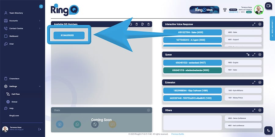 Assigning a DID Number to Conference, Extension, Queue, and IVR