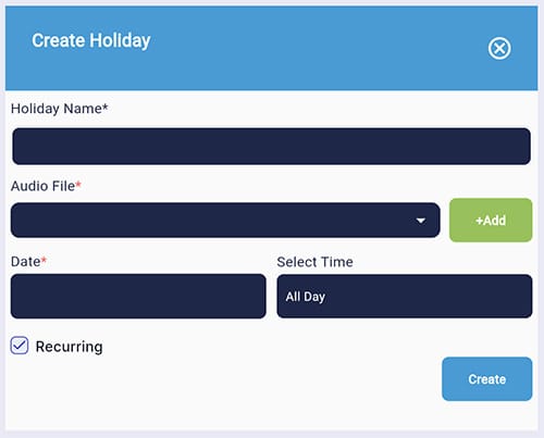 3. Recurring – Check the box if you would like the holiday to be repeated annually.