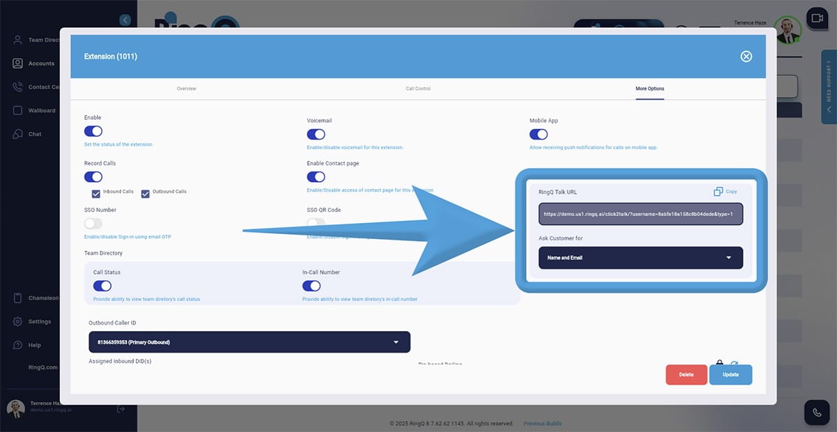 4. Choose the specific extension you want to assign to the RingQ Talk URL.