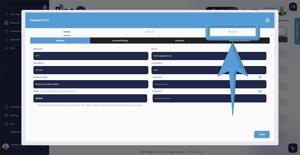 5. Go to More Options and locate the RingQ Talk URL.