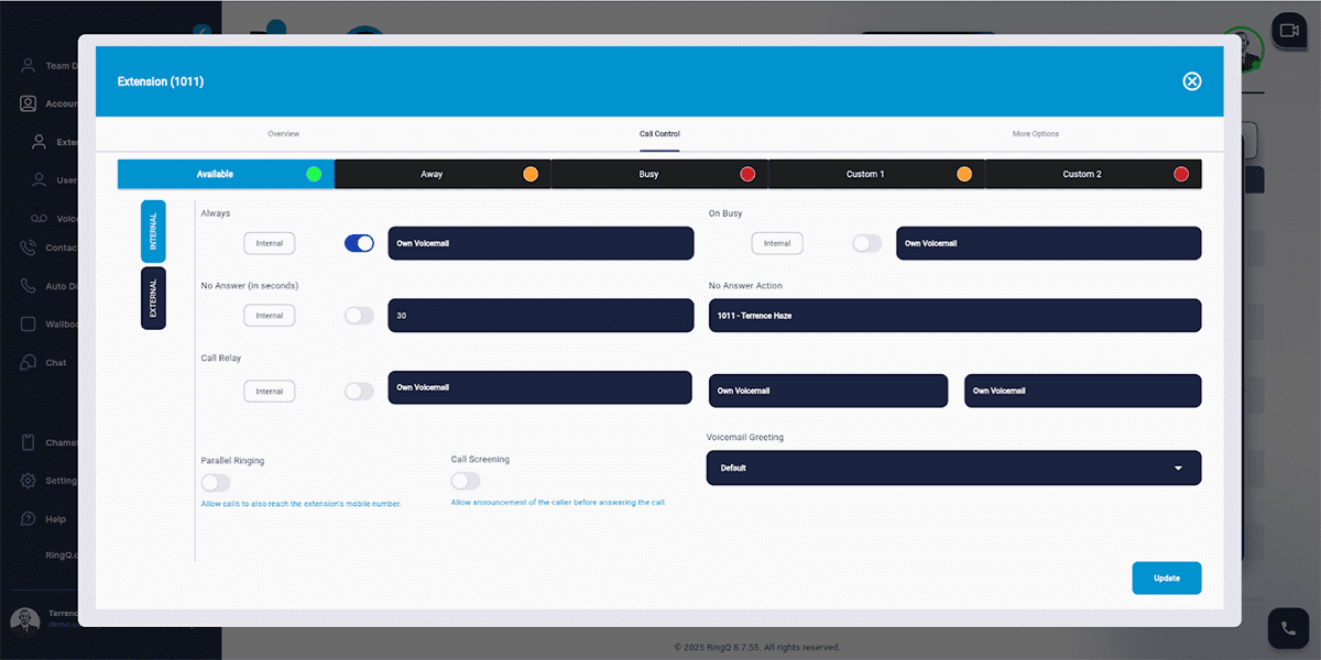Keeping extension settings up to date is key to ensuring smooth communication across your organization. In this guide, we’ll show you how to edit and manage user extensions in RingQ—including updating personal information, configuring email notifications, adjusting voicemail settings, and more.