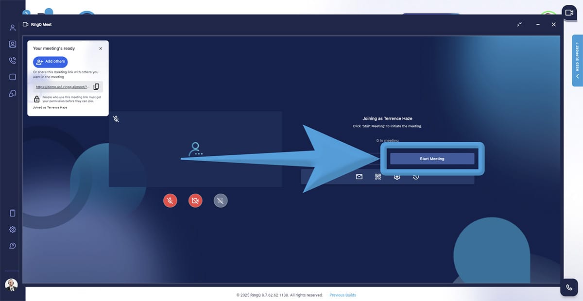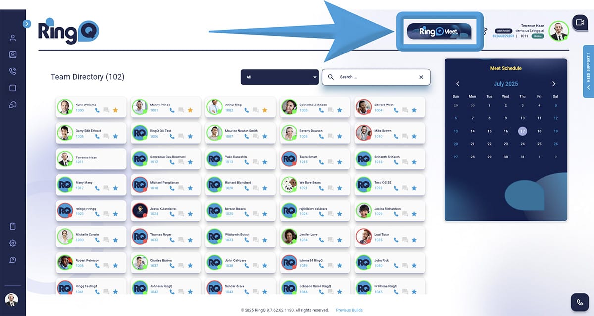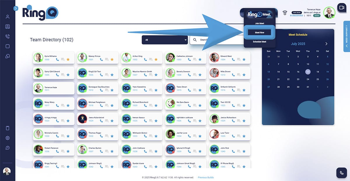 This guide will show you how to use the “Meet Now” button in RingQ Meet to create and start a meeting on the spot. In just a few clicks, you’ll be connected and ready to collaborate.