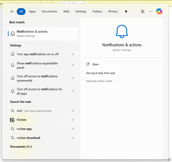 4. Select “Notifications & actions” (Windows 10/10 Pro) or “Notifications” (Windows 11)