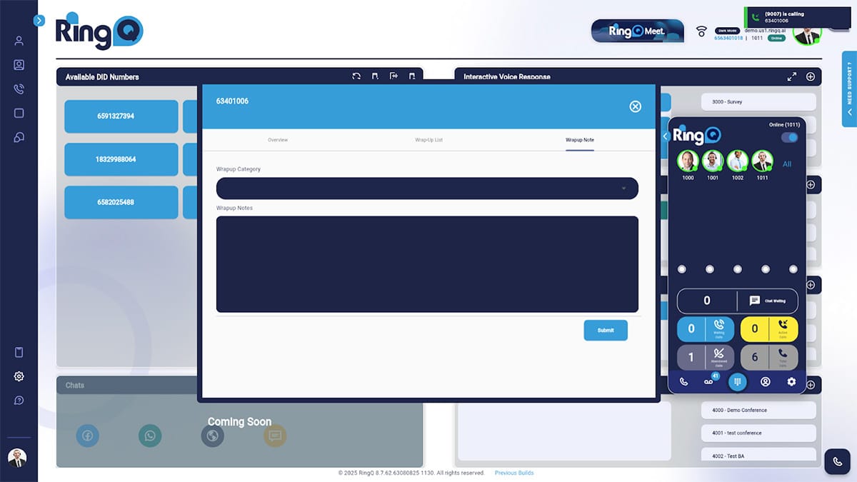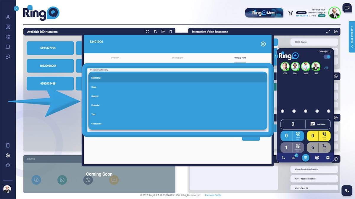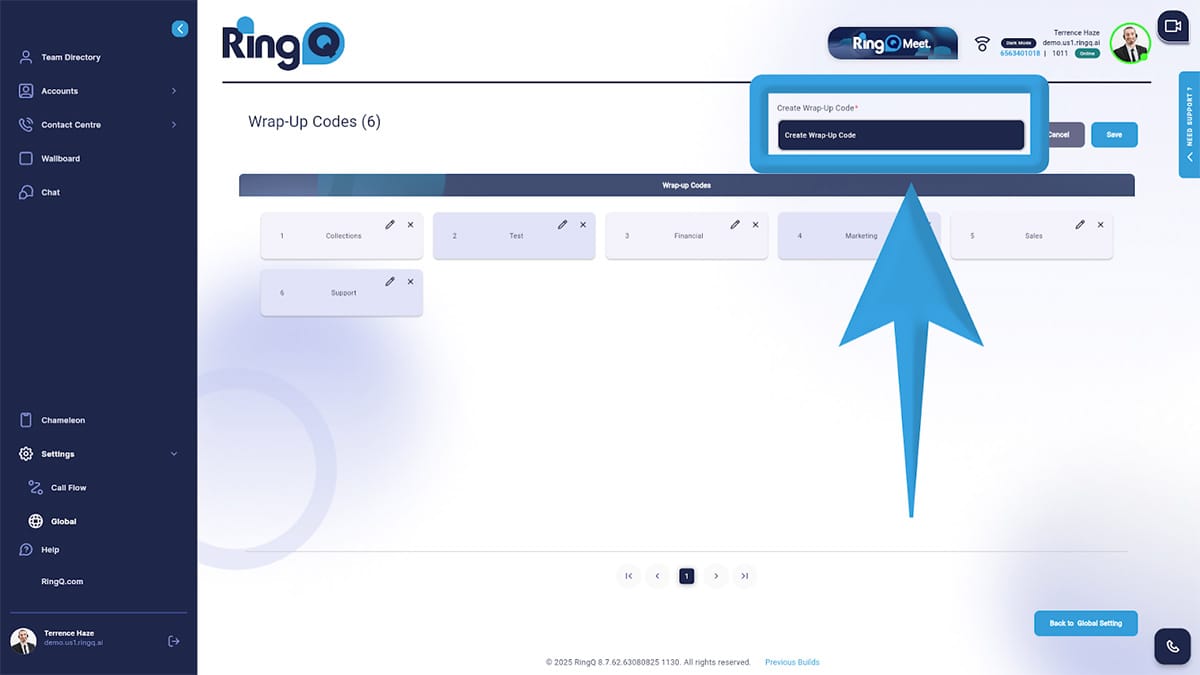 1. Login to you RingQ Admin Dashboard → Call Center Settings → Wrap-Up Codes