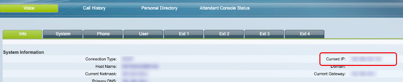 2. From the phone’s interface, click Voice Tab > Info or from the phone’s web portal go to the System Information.